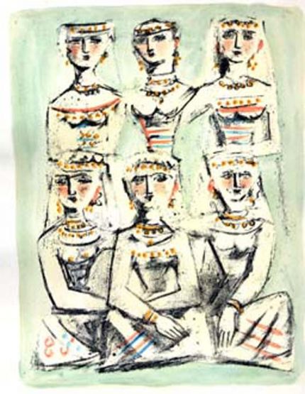 Foglio mm. 315 X 255. Opera facente parte delle 100 acquarellate a mano sotto la direzione dell'artista. Firma e data al colophon. Campigli "Cat.dell'Opera Grafica" (litografie e incisioni) 1930-1969 di F. Meloni e L. Tavola ed. Graphis Arte pag. 79-80-81-82-83-84