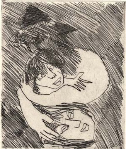 Foglio mm. 485 X 310. Tiratura esemplari 70 in numeri arabi, alcune prove. Opera facente parte della cartella in cartone pesante a 3 ante con cerniere in tela cm. 50 X 35 (ripiegata) contenente 5 acqueforti ed un teso di E. Caballo. Ediz. All'Insegna del Lanzello. Costigliole d'Asti.
