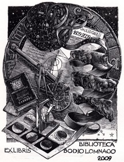 Opera espressamente realizzata e pubblicata sul catalogo" La sfera celeste - 5° concorso internazionale EX LIBRIS BIBLIOTECA DI BODIO LOMNAGO" pag. 68